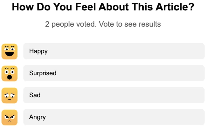 Reactions as Polls allows publishers to collect reader sentiment using a simple voting mechanism. By displaying poll results directly on the article page, this feature helps increase engagement and retention.